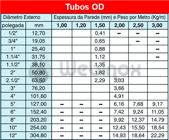2. Diâmetro Externo (OD): Varia de acordo com o estoque disponível